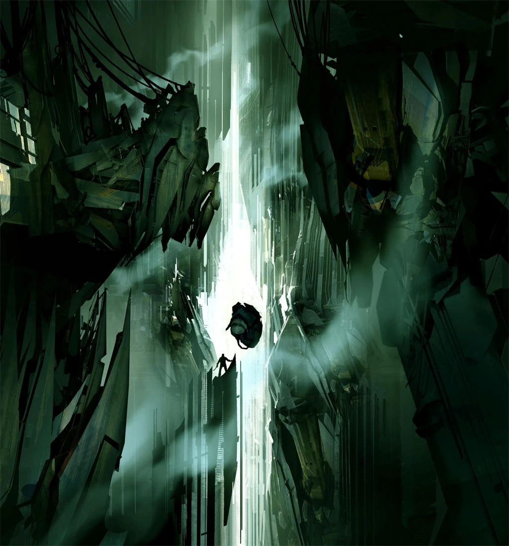 Gordon Freeman face a face com um Advisor na segunda arte conceitual do Episode Three, criada e lançada em 2008.